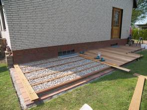 Holzterrasse während des Aufbaus