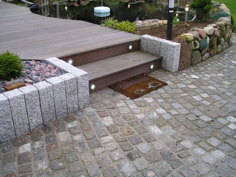 Holzterrasse in Kombination mit Naturstein