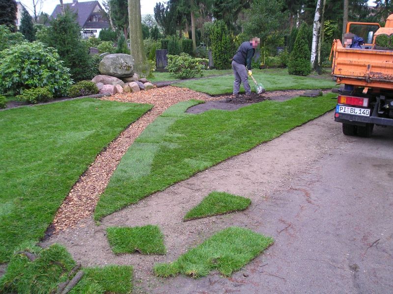 Auch kleine Flächen werden von uns fachmännisch mit Rollrasen belegt