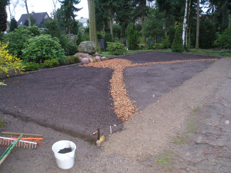In die Rasenfläche werden später Grabtafeln eingelassen