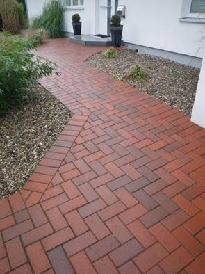 Gerumpelte Pflasterklinker im Fischgrätverband